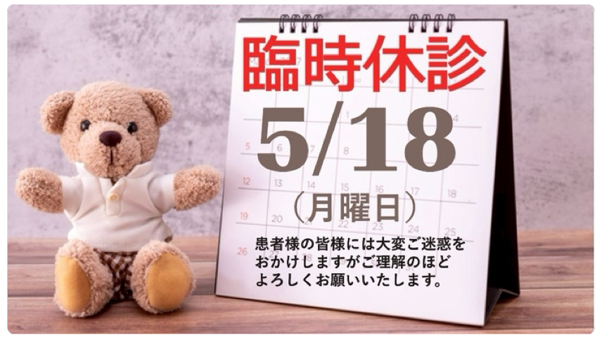 2026年5月18日(月)臨時休診とさせていただきます。
